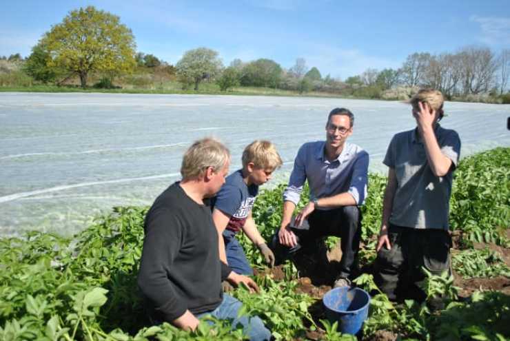 Potatisodlare Arnold, Jesper och Pontus Ebbesson tillsammans med Lidls inköpsansvarig frukt och grönt Peter Reisenzein