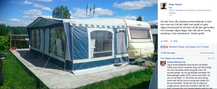 På facebook har en husvagnsägare lagt ut ett erbjudande som får det att tåras i ögat.