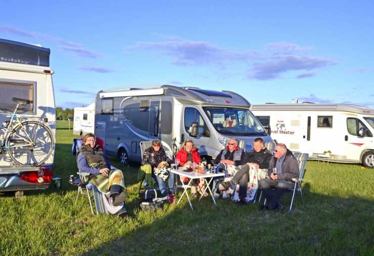 Hus på Hjul är ett ypperligt tillfälle att träffa vänner och ha trevligt. Så här gott hade det här gänget i solskenet på mässan vid premiären förra året.