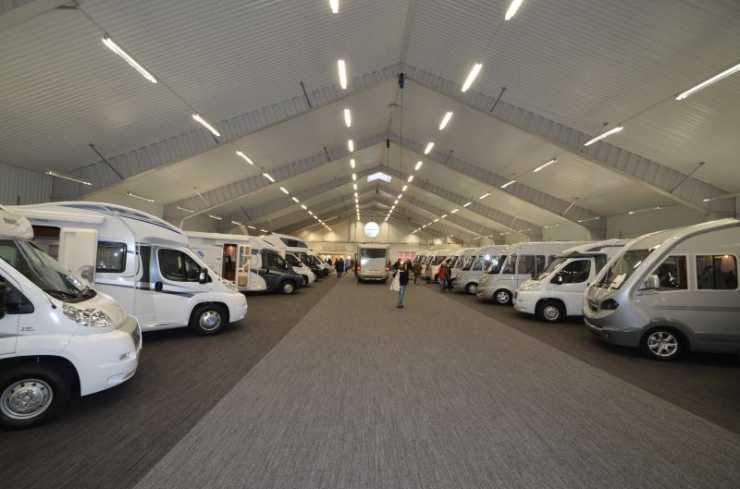– Syftet med den nya hallen är att vi ville att kunderna ska ha en ny fräsch hall där de kan kolla på våra nyheter, säger Nils Pettersson, ägare av Husbilslandet.