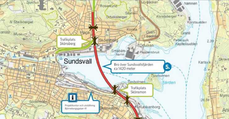 Bron, som sträcker sig över Sundsvallsfjärden, är en del av det två mil långa E4-projektet från Skönsberg i norr till Myre i söder och projektet beräknas minska körtiden med 20 minuter i rusningstrafik för de omkring 10 000 fordon som dagligen beräknas köra över bron.