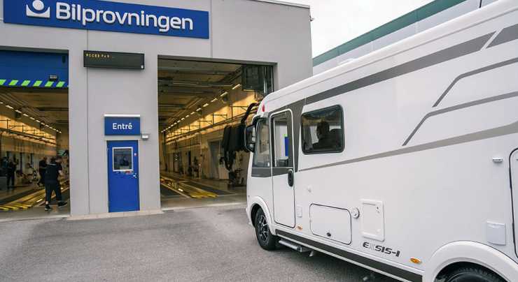 Husbilar upp till 3500 kg kontrollbesiktas första gången efter tre år i trafik, andra gången efter ytterligare två år och därefter varje år. Husbilar över 3500 kg besiktas första gången efter ett år i trafik och därefter varje år.