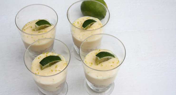 Fördela mjölkcrèmen i glasen och garnera med rivet limeskal och en liten limeklyfta.
