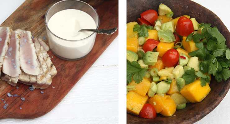 Servera med limeaioli och avokado & mangosalsa.