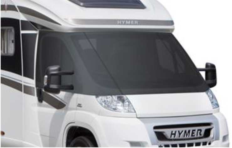 HYMER har tagit fram en solskyddsmatta som inte bara skyddar mot solljus och värme genom vindrutan utan även från oönskad insyn. Då solskyddsmattan inte är konventionellt isolerande, utan en ovanligt lätt och vädertålig PVC-belagd väv med hög transparens, ser du hela tiden vad som händer utanför, medan ingen kan se in i fordonet.