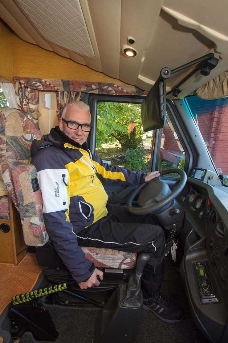 Laikan har framdörrar på båda sidor, och förarhytten är Ivecos välkända från tiden. Än idag känns instrumentbrädan relativ modern och det som behövs finns. Farthållare och AC och en kuriosa är den backkamera av tjock-tv modell som monterats på instrumentbrädan. Bilden är svartvit men riktigt bra från två kameror; en för närbild bakom bilen och en för lite längre distans.