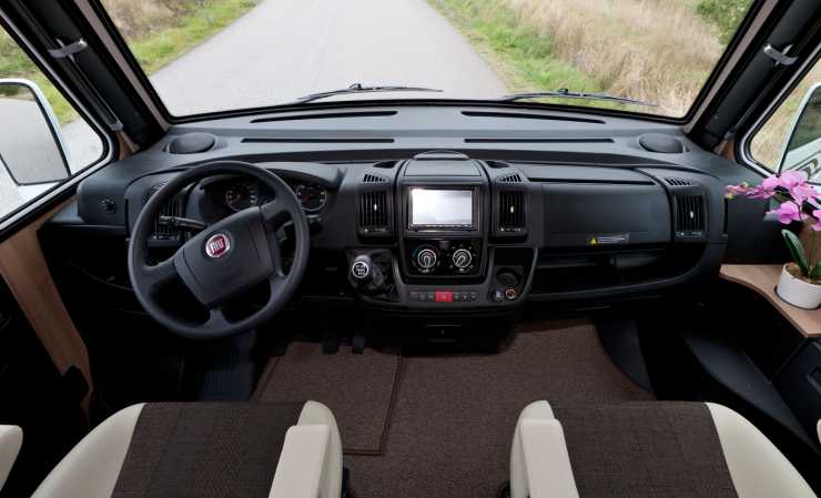 En helintegrerad bil på drygt sju och en halv meter. Planlösningen utgörs av höga långbäddar över garderober och stort lastutrymme, separat toa och dusch, vinkelkök samt sittgrupp som bänkar fem personer. En publikfriare med andra ord. En riktig sjuförti!