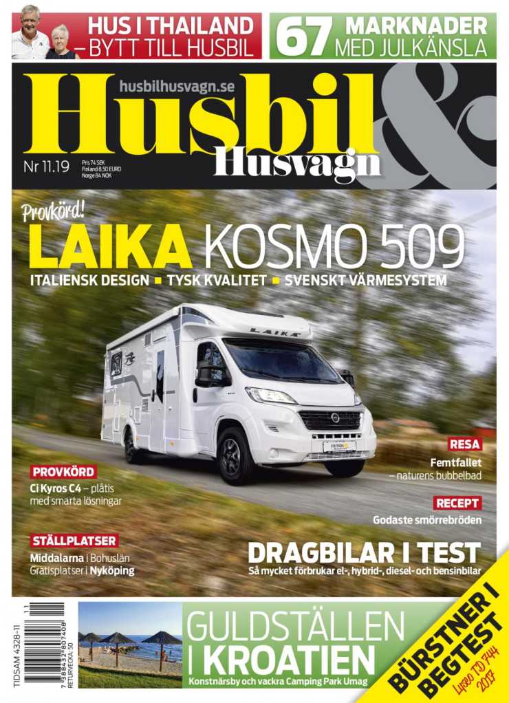 I nummer 11.2019 provkör vi Laika Kosmo, Ci Kyros och Bürstner Lyseo. Vi jämför förbrukning med släp mellan fyra drivlinor. Restips i Kroatien samt lista med julmarknader i Sverige. Dessutom ställplatstips i Södermanland och Bohuslän.