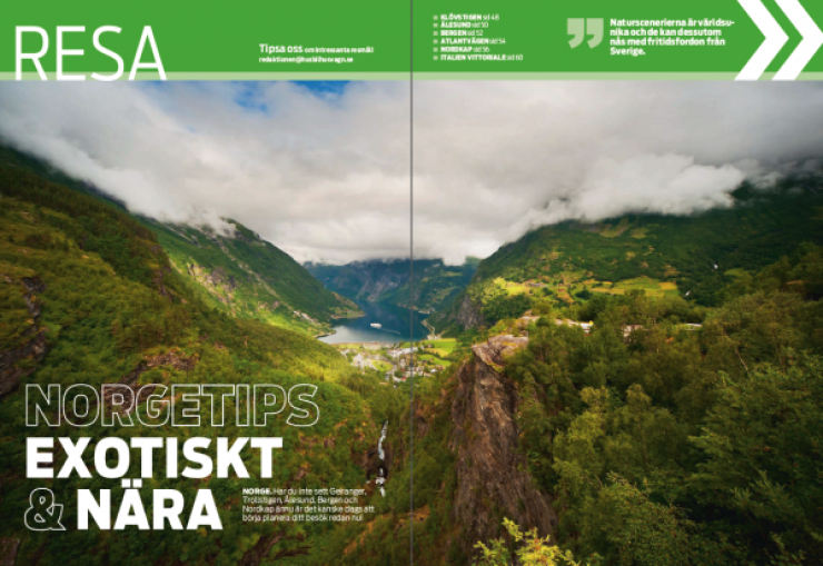 Läs om att resa till Nordkap! 20 digitala sidor om Klövestigen, Ålesund, Bergen, Atlantvägen, Nordkap samt Vittoriale i Italien.