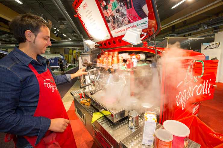 Pyyyyyyys! Här vankas riktigt gott kaffe! Var? I Fiats monter! OBS: Det är gratis!