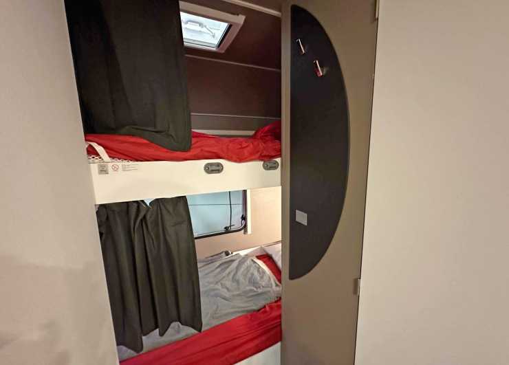Supermysigt var det i alla fall att gå in den vägen och hamna i en vrå med eget fönster, förvaringsfickor på väggen och en gardin som kan dras för till resten av vagnen. Enda problemet lär vara alla bråk som uppstår för att alla barn – och vuxna? – kommer att vilja paxa just den bädden.