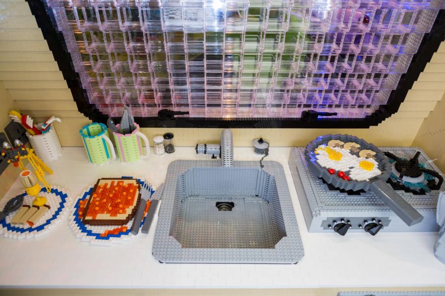 En husvagn byggd helt i LEGO med all inredning, elektriskt ljus och rinnande vatten! Se filmen om bygget.