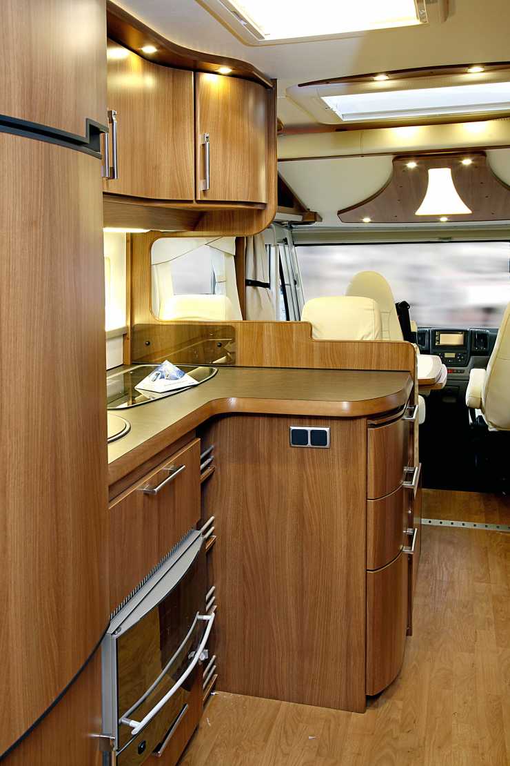 Det finns många och smarta förvaringsutrymmen i köket och gott om elkontakter i hela bilen. Det är också överraskande många olika sorters belysning och det känns som om designteamet ansträngt sig ordentligt för att höja mysfaktorn. Det ger en härlig känsla av lyx och "home-sweet-home"-feeling.