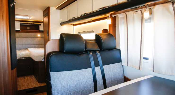 Precis som i de flesta husbilar är soffan försedd med två säkerhetsbälten som egentligen enbart passar två barn. Det är trångt att sitta så tätt under långa resor och husbilen lämpar sig därför bäst för par eller barnfamiljen med maximalt fyra personer (två barn).