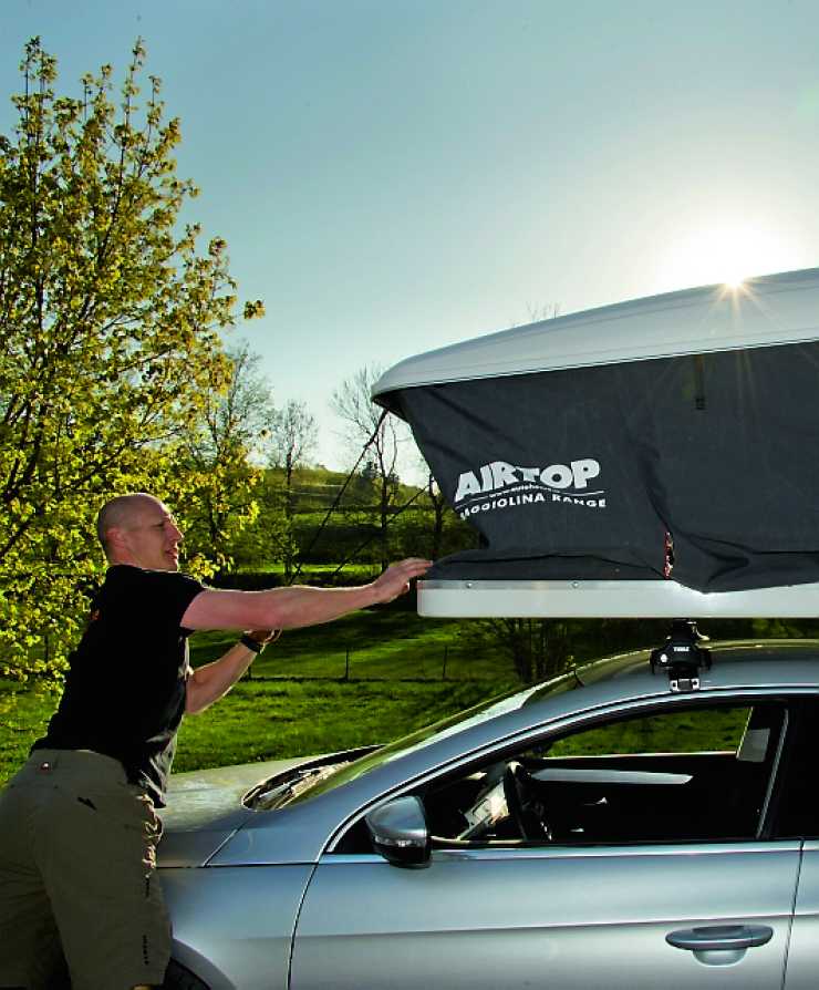 En takbox av glasfiberplast blir med ett par handgrepp en sovplats för två i den lilla modellen eller för två och en halv i den bredare. Med sin aerodynamiska form ökar den inte bränsleförbrukningen nämnvärt. Autohome Air Top kan monteras på de flesta större personbilar. För stabilaste montering bör det inte vara för tätt mellan lastbärarna – något som är alltför vanligt på modernare sedaner så att en kombi är nog att föredra.